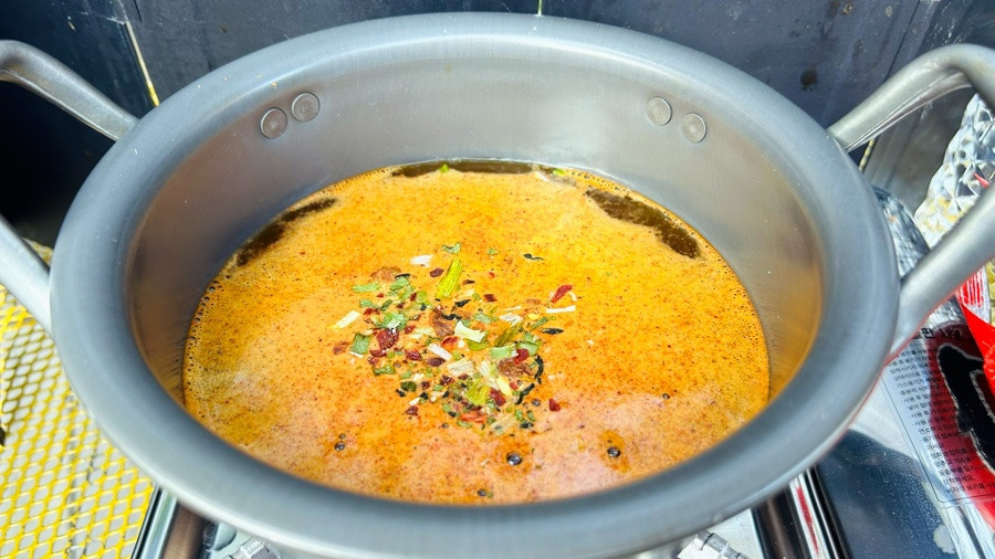 라면에 물을 넣고 저는 스프부터 넣습니다!