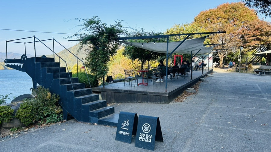 밖에 나오면 악어섬 전망으로 테이블들이
