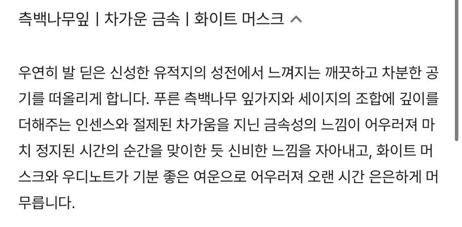 그만큼 절제된 고급스러움이 느껴지는 향수입니다.