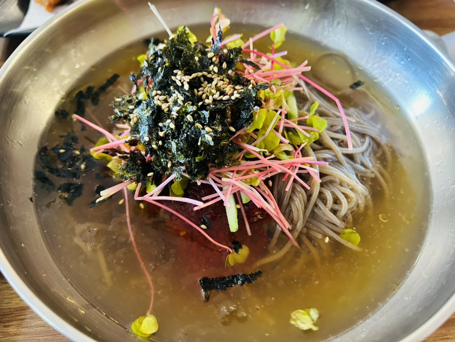 저는 날씨가 더워서 물 막국수를 주문했어요,